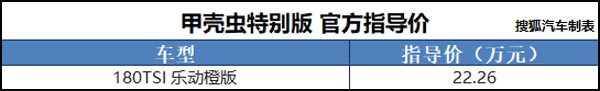 近日,我们从相关渠道获悉,甲壳虫乐动橙版正式上市,售价为22.26万元。新车是与2018草莓音乐节合作推出的一款特别版车型,采用了独特的橙色车漆喷涂,车厢内部装饰也更加动感。