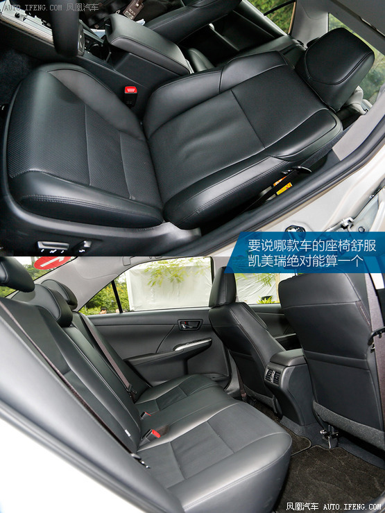 值得说道的还有座椅。在人们的印象中,日系车座椅都很舒服,但实际上这是个误区,我们之前评测过的很多日系车,座椅都越来越硬实,如果非要说哪款车舒服,凯美瑞绝对能算一个。用手捏捏座椅的坐垫或者是侧面支撑,就能发现这些位置的真皮柔和、坐垫填充物软和,关键占地面积还大,这样绝对能让人坐着很舒服。