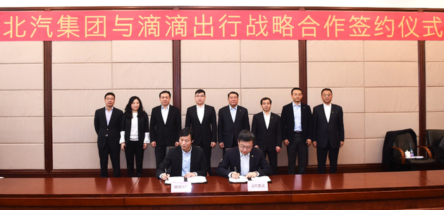 据新华网消息, 2018年3月7日,北汽集团与滴滴出行在京签署战略合作框架协议。北汽集团党委书记、董事长徐和谊,北汽集团党委副书记、总经理张夕勇,滴滴出行创始人兼CEO程维及双方相关领导共同出席了签约仪式。根