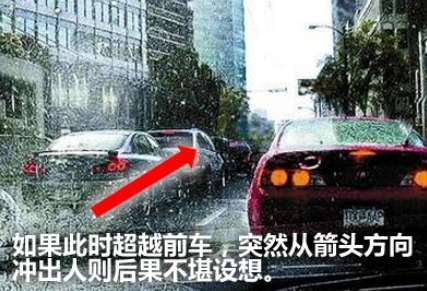 如果前车“块头”较大,挡住你的驾驶视野时,切忌超车,尤其是从右侧超车。可能你一转方向盘出来,前方出现一大群正在过马路的行人又或者是一处正在进行维修的工地。
