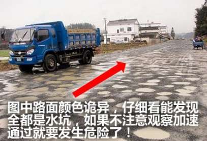如果你发现远方路面颜色与目前行驶路面颜色不同,首先要降低车速,然后观察,除了自己停车观看的方法之外,还要看同方向车辆驶过的情况。路面颜色变化原因有很多,常见的是:由柏油路变成砂石路,路上有水,路中有坑洞。