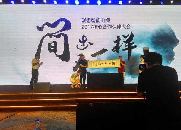著名书法家、篆刻家侯鸿钧受邀现场挥毫创作,“简出不一样”,为活动助兴,受到与会科技才俊的热 ... 活动现场 8月24日,联想科技创新大会在合肥香格里拉大酒店举行,来自全国各地联想人和合作