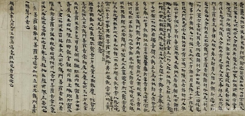 《小楷维摩经卷》,魏晋南北朝/393年,王相高,纸本墨笔,手卷,纵24.4厘米,横428.2厘米 ,上海博物馆藏  王相高《小楷维摩经卷》,写于魏晋南北朝时期后凉的麟嘉五年(公元393年),为存世写经卷中年代较早者,带有