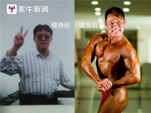 45岁时,他的体重为96公斤(身高173厘米),基本不运动,有一个浑圆啤酒肚。59岁时,他的体重是68公斤,一身腱子肉,累积赢下了30多座国内外健美比赛奖杯。14年时间,他从一名在机关上班的胖大叔,变成了国家健美