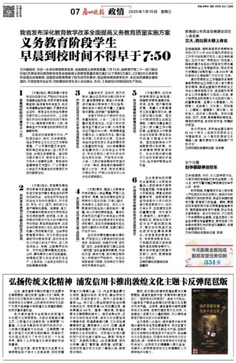 • 【兰州晚报】教育部公布思政培育建设项目入选名单 兰大、西北民大榜上有名