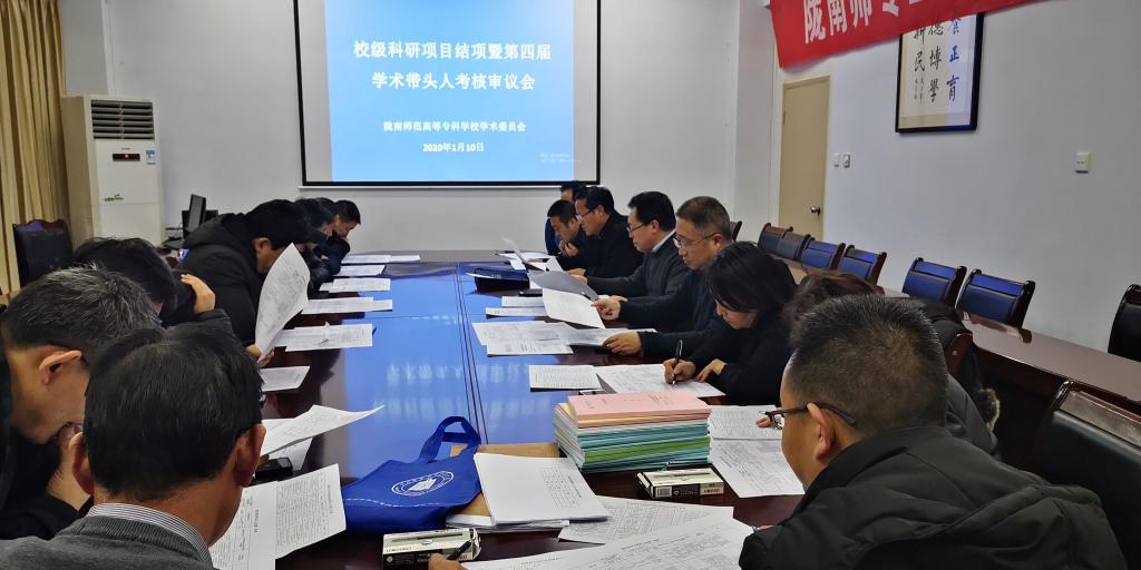 会场审核1月10日晚,陇南师专召开2020年学术委员会第一次工作会议,审议2016年立项的14项校级科研项目结项和第四届校级学术带头人2019年考核情况。校学术委员、副校长王胜青教授主持会议。学术委员会副主任、科研外事处处长蒲向明教授介绍了