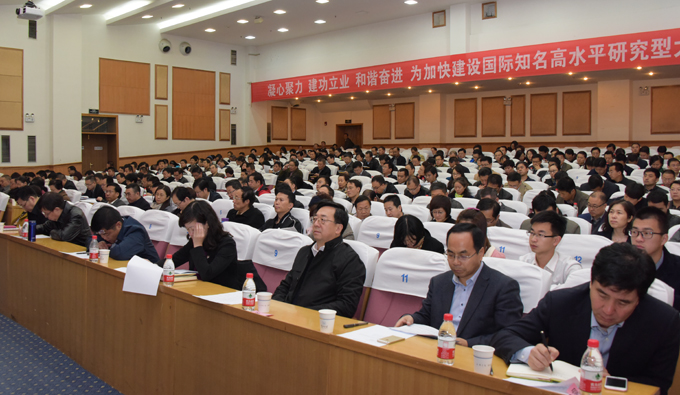 会议强调,2016年,是学校启动“十三五”规划的开局之年,也是我们全力推进世界一流大学和一流学科建设的破题之年。能否在高等教育新一轮建设中抓住机遇,能否切实担负起引领创新发展的使命,事关学校未来的发展水平,也决定着我们在整个高等教育格局中的地位。经过“985工程”和“211工程”多年的重点建设,我校办学质量不断提高,综合实力明显增强,在国内外的影响力也逐步提升,为跻身世界一流行列奠定了良好的基础。但对照“双一流”建设的任务要求,学校在师资队伍、人才培养、科研创新与成果转化、学科建设、国际合作与交流方面依然存在着较大差距和不足。发展如逆水行舟,不进则退。面对这一重大战略机遇,迎接这一严峻挑战,我们必须树立忧患意识、危机意识,增强责任感使命感紧迫感,把握症结,破解难题,奋发有为,勇敢担当,在目标引领和问题导向下着重解决那些事关学校内涵发展的主要矛盾。