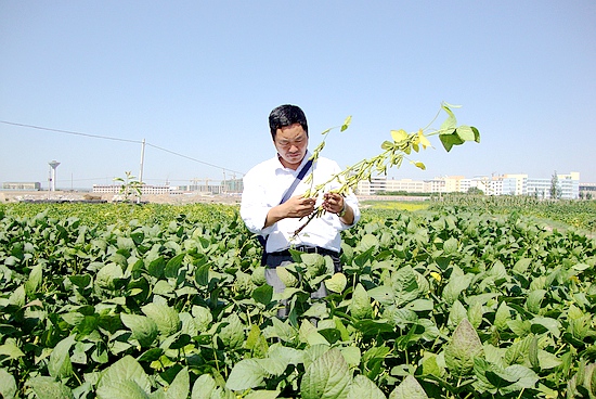 韩天富在凉州区河东镇查看大豆品种比较试验