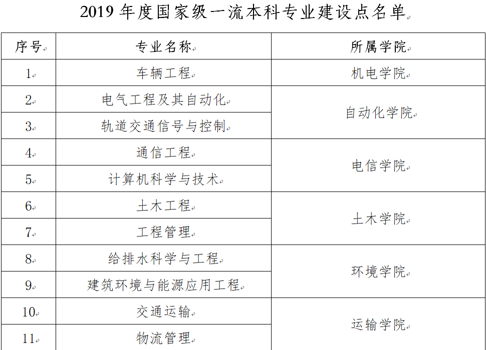 近日,教育部办公厅发布了《关于公布2019年度国家级和省级一流本科专业建设点名单的通知》(教高厅函[2019]46号),兰州交通大学车辆工程、电气工程及其自动化、通信工程等11个专业获批国家级一流专业建设点,机械设计制造及其自动化、自动化、水利水电工程3个专业获批省级一流专业建设点。