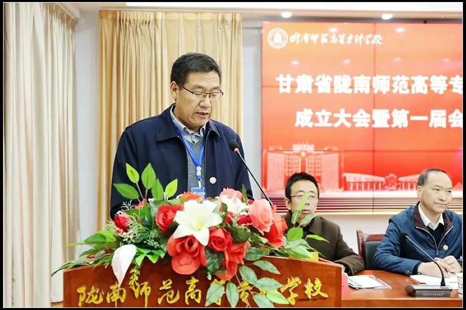 陇南师专校原党委书记司跃宁,1980级校友、陇南市实验小学校长姚汉平,教工校友、甘肃省广电总台纪录片工作室专职导演、主任编辑张晨,1991级校友、西北师范大学文学院冉耀斌教授,2004级校友、定西市安定区巉口中心小学教师、马云乡村教师奖获得者高婷先后进行发言。他们用真实的情感表达了对校友会成立的祝贺、对母校的深深眷恋以及对母校未来发展的深情祝福。