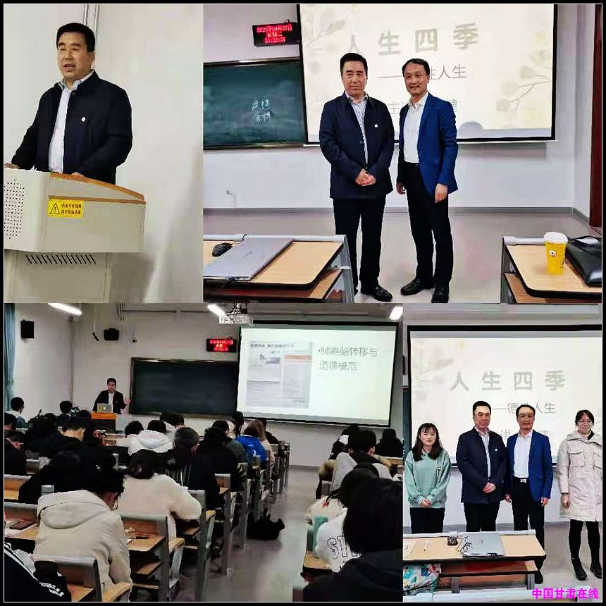中国甘肃在线讯(赵小春)4月27日,著名作家、文化名家、“兰州好人”、新闻传播学博士郭健教授应邀在兰州大学做了题为《人生四季与法治轮替——德性人生分享》的大型学术报告。