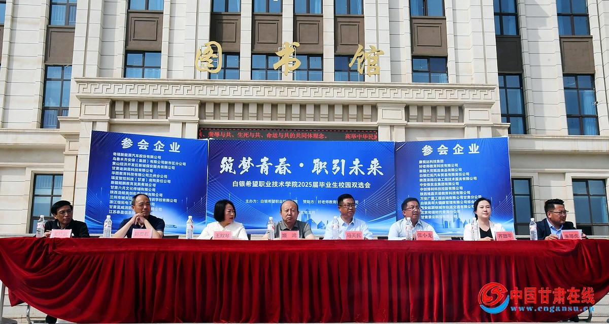 中国甘肃在线白银讯 5月27日,为做好高校毕业生就业工作决策部署,积极搭建毕业生与用人单位双向选择对接平台,全力做好2025届毕业生就业工作,推动毕业生高质量充分就业,白银希望职业技术学院2025届毕业生校园双选会在学院图书馆前圆满举办。白银西区经济开发区管理委员会党工委委员、副主任姬鸿,白银区人力资源和社会保障局就业服务中心主任王双琴,白银西区经济开发区管理委员会人才服务中心主任齐珊平以及学院党政领导班子成员出席活动。活动由学院党委委员、副院长侯鹏主持。