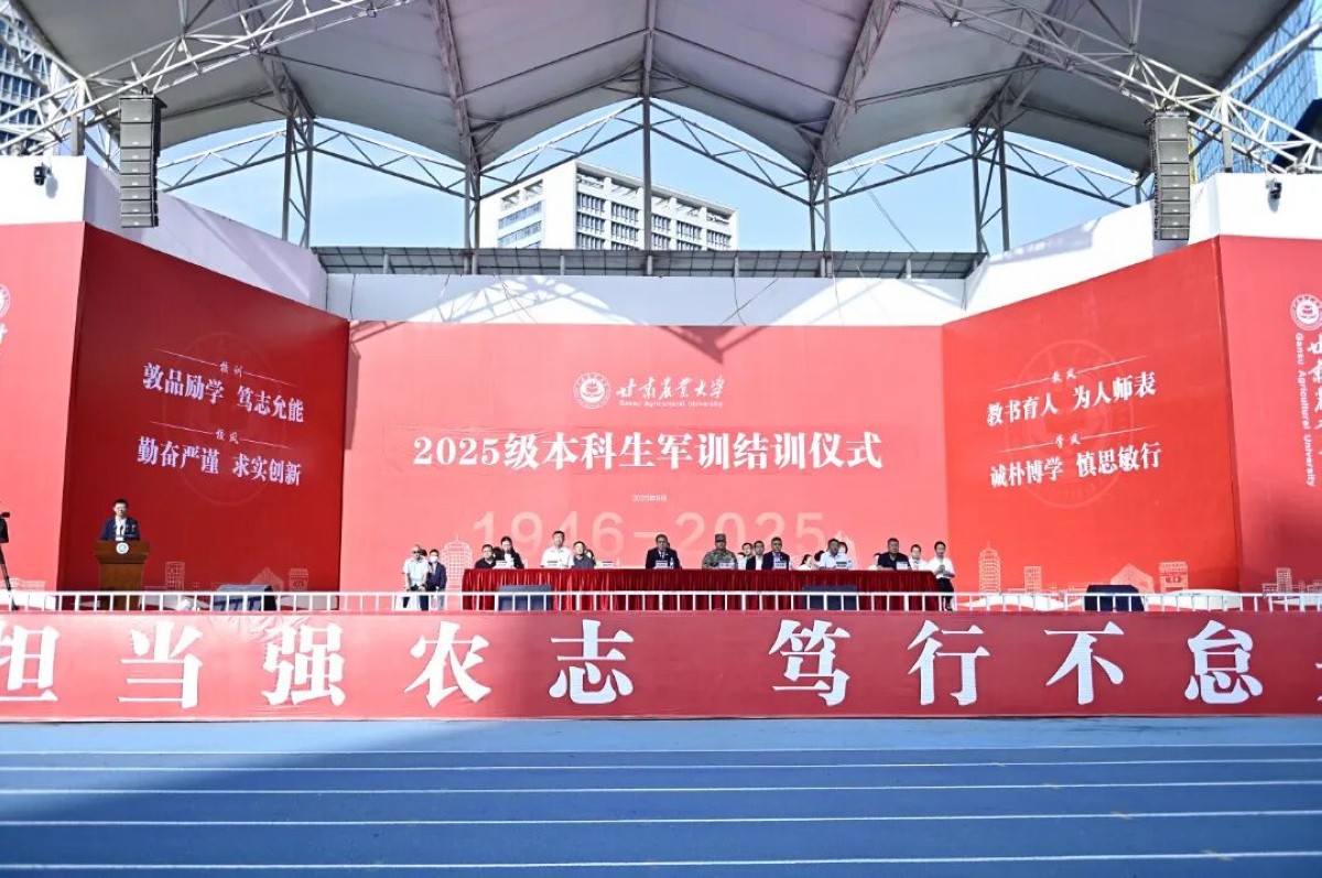 中国甘肃在线兰州讯 9月14日上午,学校2025级本科生军训结训仪式在青春体育场举行。副校长王立宗,军训团团长,机关相关部门负责人、各学院党委书记和分管学生工作领导,辅导员、2025级班主任、军训教官及全体军训学员参加活动。仪式由党委学生工作部、武装部负责人主持。