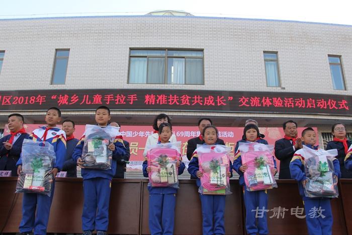 启动仪式上,安阳乡20名贫困学生接受了由甘州区青少年陪护驿站、甘州区思达文化教育提供的爱心大礼包,安阳乡的20名学生和南关学校的学生互赠小礼品。
