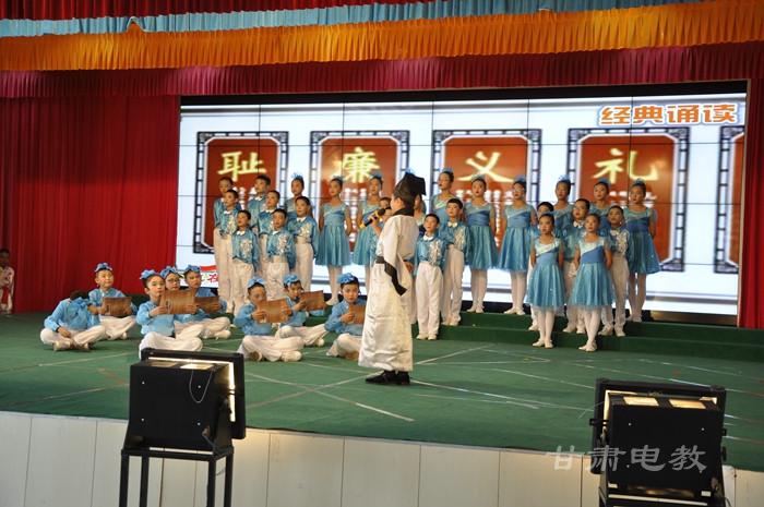 近年来,民勤县把立德树人作为教育的根本任务,深入挖掘和发挥中华经典在未成年人思想道德建设中的教育内涵和教育功能,印发《关于进一步加强中小学中华优秀传统文化教育活动的通知》《关于在全县中小学深入开展中华经典诵读活动的通知》,组织全县中小学广泛开展经典诵读和中华传统文化教育活动。各学校将中华传统文化融入校园文化建设,寓“传统文化”、“传统美德”、“24字”社会主义核心价值观于校园的一草一木、一砖一墙,以文化打造校园,用环境熏陶师生。