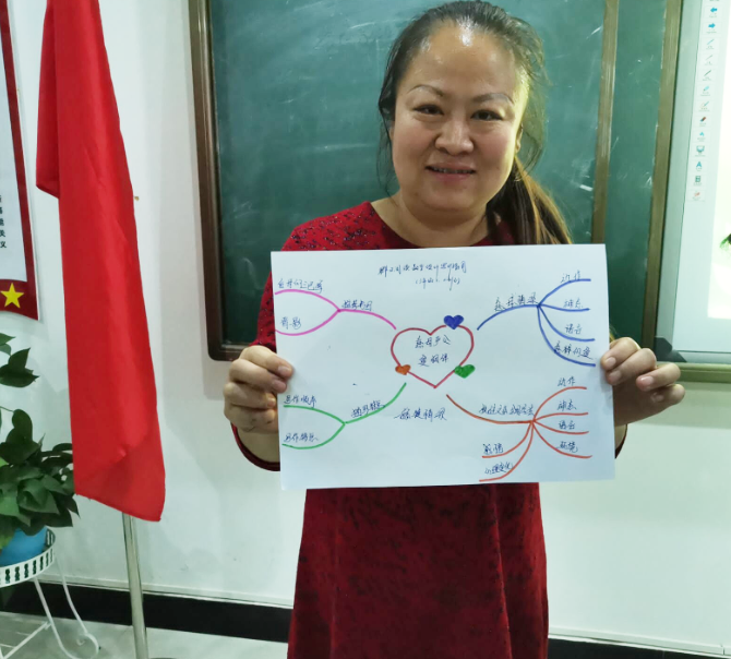 活动最后是分享成果环节,各组老师分别上台分享本组的研讨成果,每个组成果丰富,有组名、有口号,绘制的海报个性突出,特色鲜明,展示出了青年教师的风采,教案都以思维导图的形式展示出来,再加上教师们生动讲解,让每位老师都体验到了研讨中的愉悦。