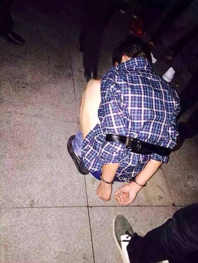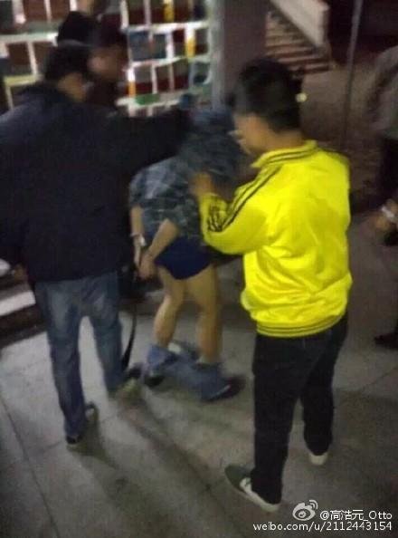 据说在抓捕的时候还不老实,想逃跑,分分钟脱了裤子抽了皮带给绑了起来