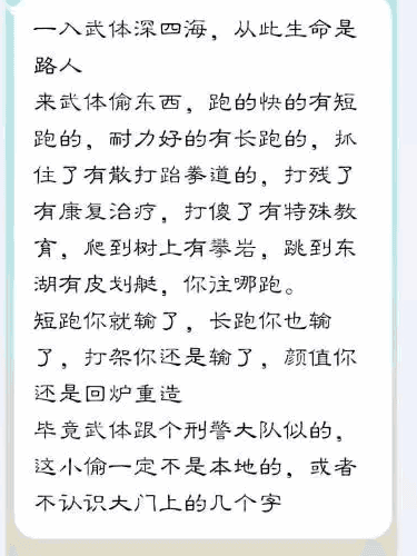 敢来武体偷东西,哥们你是厉害,还是活的太清闲。