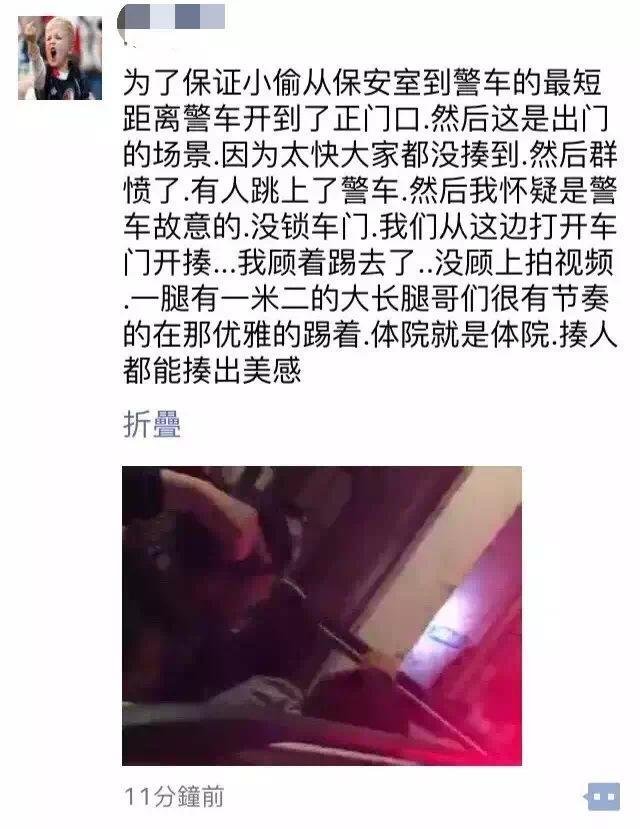 最后警车怎么开到门口去的我不知道,我只知道最后警车快要开走的时候差点被掀翻;小偷的心理阴影面积我不知道,我只知道从门卫室到警车不到一米五的距离他可能被踢了不下二十脚