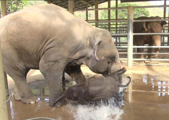 据英国《每日邮报》11月4日报道,近日,泰国清迈一只象宝宝在洗澡时调皮戏水的画面萌翻了许多看客。