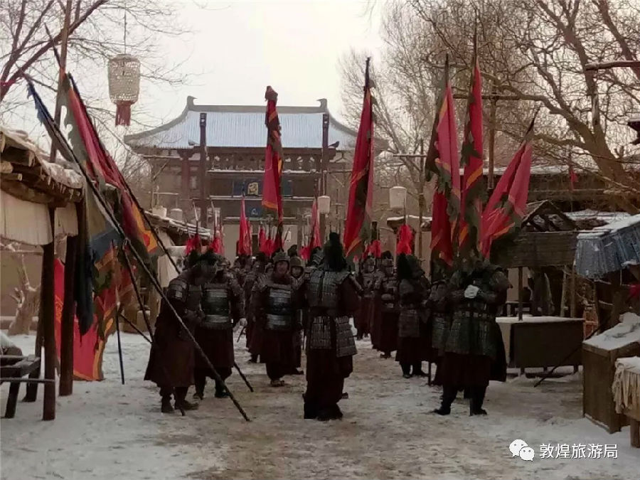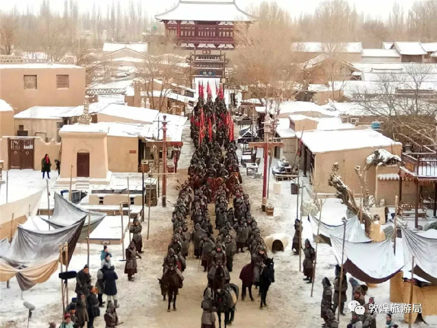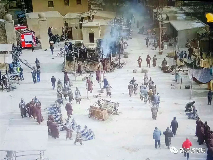 下图为12月份,敦煌古城拍摄古装电视剧《鹤唳华亭》的一些场景。