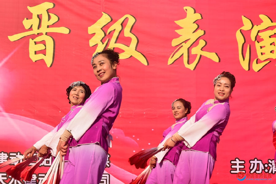 晋级选拔赛在杨庄村阳光健身队的一曲腰鼓《开门红》中拉开帷幕,伴随着优美动听的音乐声,来自三阳川中滩、石佛、渭南3镇的25支健身舞蹈队,先后表演了25个丰富多彩的文艺节目,有民族舞、现代舞、健身操、水兵舞等。