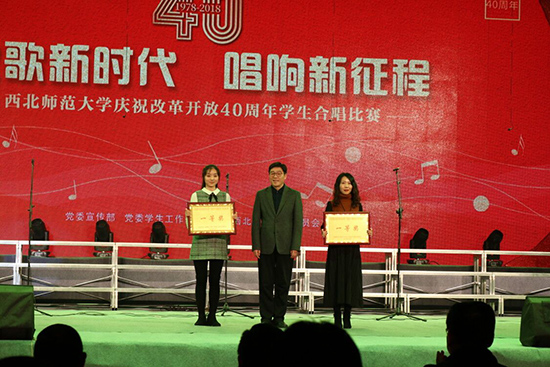 潮涌东方四十载,砥砺奋进新时代。木铎铿锵声声劲,弘扬教化谱新篇。12月22、23日晚,西北师范大学“放歌新时代,唱响新征程”庆祝改革开放40周年学生合唱比赛在体育馆嘹亮开唱。党委书记张俊宗,副校长董晨钟、张生勇、李朝东,纪委书记姚志宏出席活动并为获奖学院颁奖。各部门、各学院负责人和3000余名师生观看了演出。
