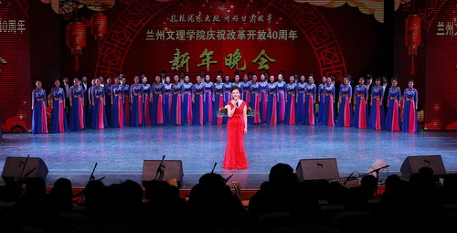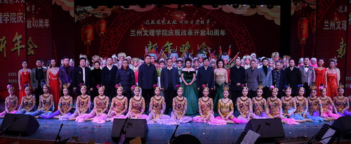 12月28日晚,我校“扎根陇原大地,讲好甘肃故事”——庆祝改革开放40周年新年晚会在实验剧场隆重举行。校领导阎晓辉、郑伟强、普登学、李先锋、李敏骞、王克太、张焱与甘南藏族自治州人民政府副州长石占良一行以及师生代表近500人观看了演出。晚会由党委宣传部主办,兰州文理学院艺术团承办。