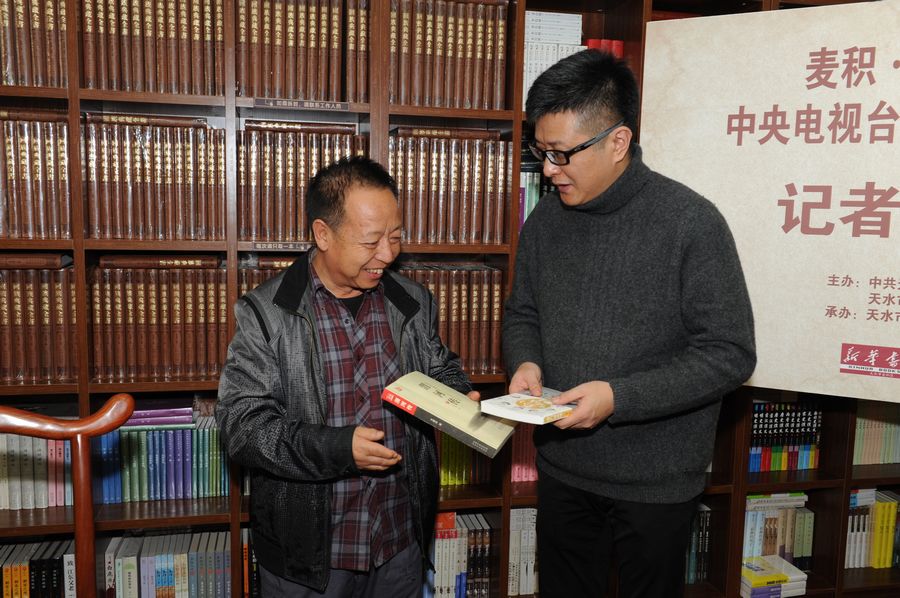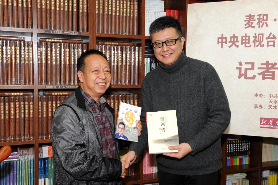 11月17日,央视著名主持人张腾岳在麦积区新华书店记者见面会上,著名作家、天水日报社副总编王若冰向张腾岳赠送了长篇散文《渭河传》,张腾岳向王若冰回赠了新书《掌门讲成语》,在互赠个人专著过程中,王若冰盛情邀请张腾岳参加下一届“中国天水·李杜诗歌节”。并在与天水媒体记者互动交流时说:“天水花牛苹果好吃”!