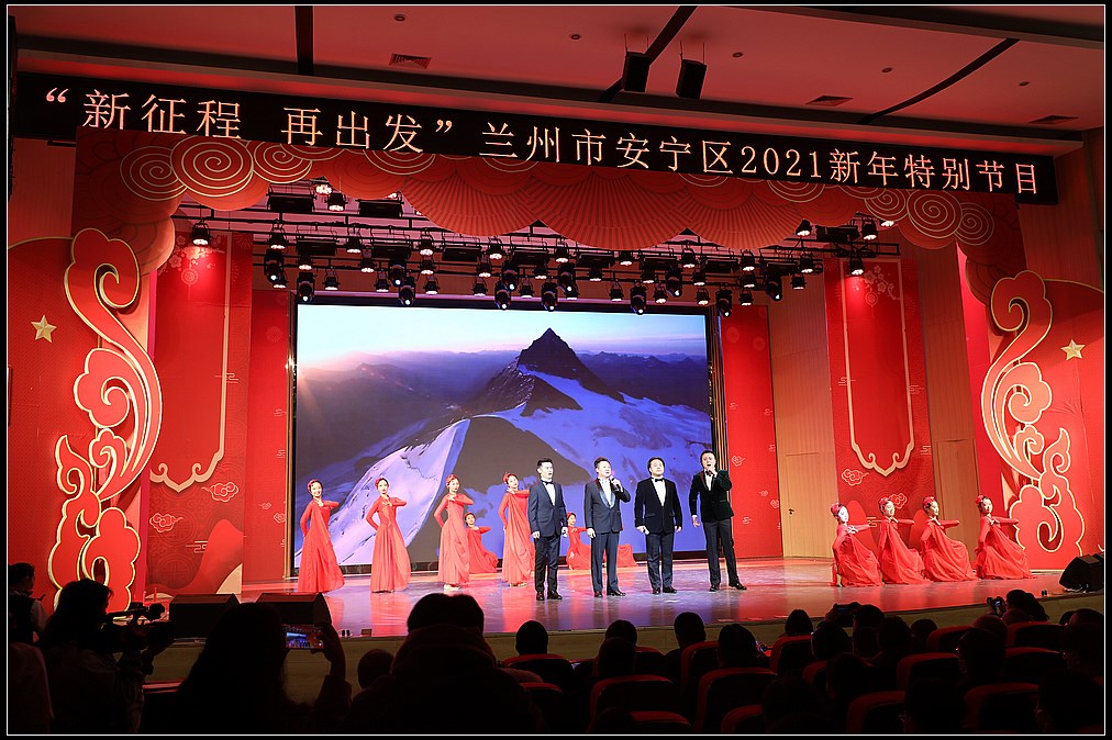 中国甘肃在线安宁讯(赵小春报道)红旗如画,展现光辉历程;岁月如歌,颂唱丰功伟绩。12月26日19时30分,随着慷慨激昂、威武雄壮的乐曲《红旗颂》的奏响,“新征程·再出发”——兰州市安宁区2021年新年特别节目在西北师大音乐厅盛大启幕。