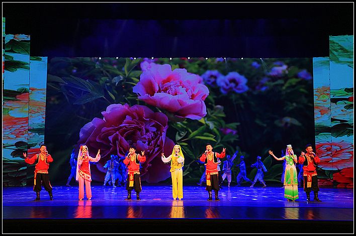 中国甘肃在线兰州讯(贾笑云摄影报道)2021年4月9日晚,“建党百年·春绿陇原”百部百场文艺展演暨省直九大文艺院团巡礼惠民演出第五场——民族歌舞晚会《石榴花开红似火》,由甘肃省民族歌舞团在兰州音乐厅倾情上演。