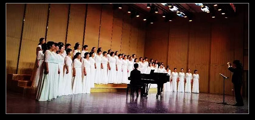 音乐会现场,以咏唱淳朴典雅的《诗经》之《秦风.蒹葭》开场,依次演唱了《在那遥远的地方》、《哈利路亚》、《美好的远方》、《奉献》等14首中外经典合唱作品,并赢得了现场观众阵阵热烈的掌声。音乐会中场西北师范大学音乐学院研究生王苗苗同学进行了交流演唱。