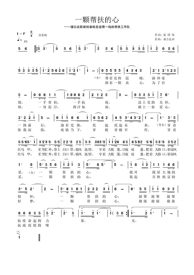 《一颗帮扶的心》——谨以此歌献给奋战在疫情一线的帮扶工作队作词:张国伟作曲:桑吉扎西编曲:禾丫演唱:孙占波