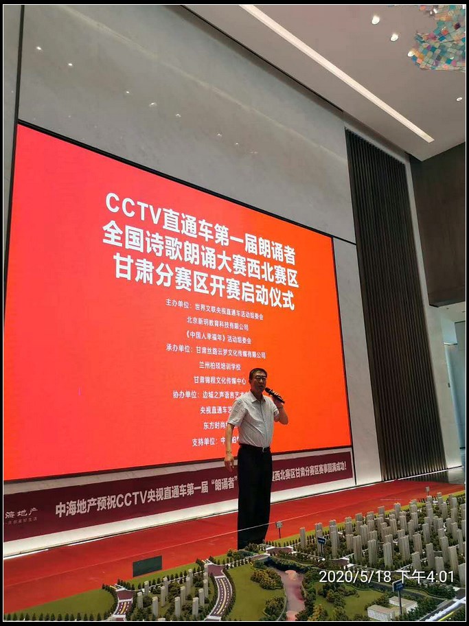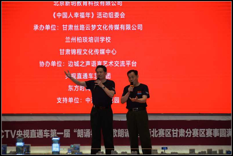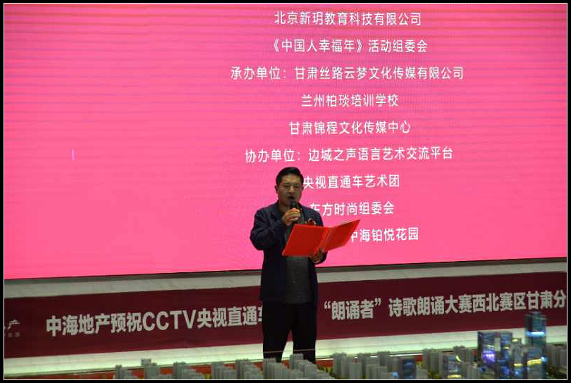 中国甘肃在线兰州讯(赵小春报道)日前,由世界文联央视直通车活动组委会北京新玥教育科技有限公司、《中国人 幸福年》活动组委会联合主办,甘肃丝路云梦文化传媒有限公司、兰州柏琰培训学校、甘肃锦城文化传媒中心 联合承办的“CCTV央视直通车第一届朗诵者全国诗歌朗诵大赛西北赛区甘肃分赛区启动仪式在兰举行”