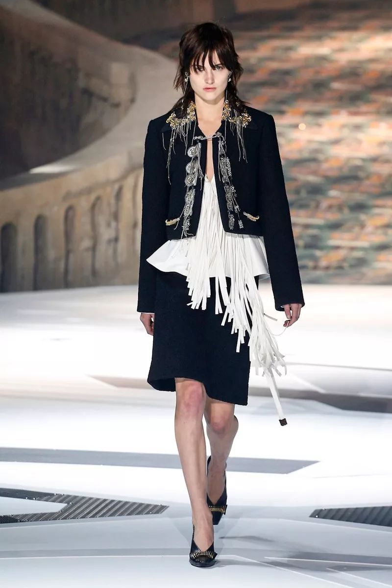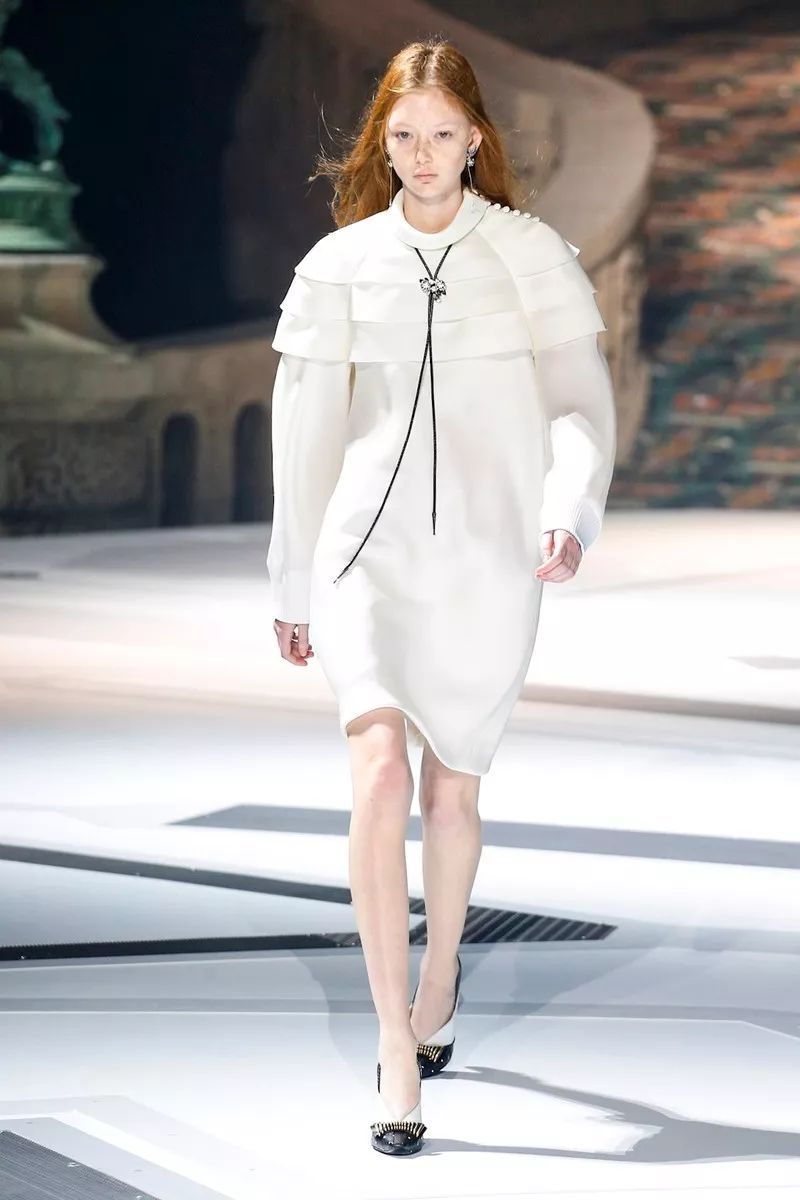 路易威登的大秀总是可以让人不断领略卢浮宫的深邃之妙;上一季开放不久的钟馆城堡石墙秀场还让人历历在目,这一次置身拿破仑三世时期的辉煌场景,又让无数人感慨万千;自然,现场来宾收获的最大惊喜还在于新季的设计笔触;继续稳定发挥的Nicolas Ghesquière,想必和一众拥趸一样、仍然对2018春夏季将往昔的盛装融入今日的衣橱意犹未尽;于是,笔触所及之处都是对美好时节的颂歌。