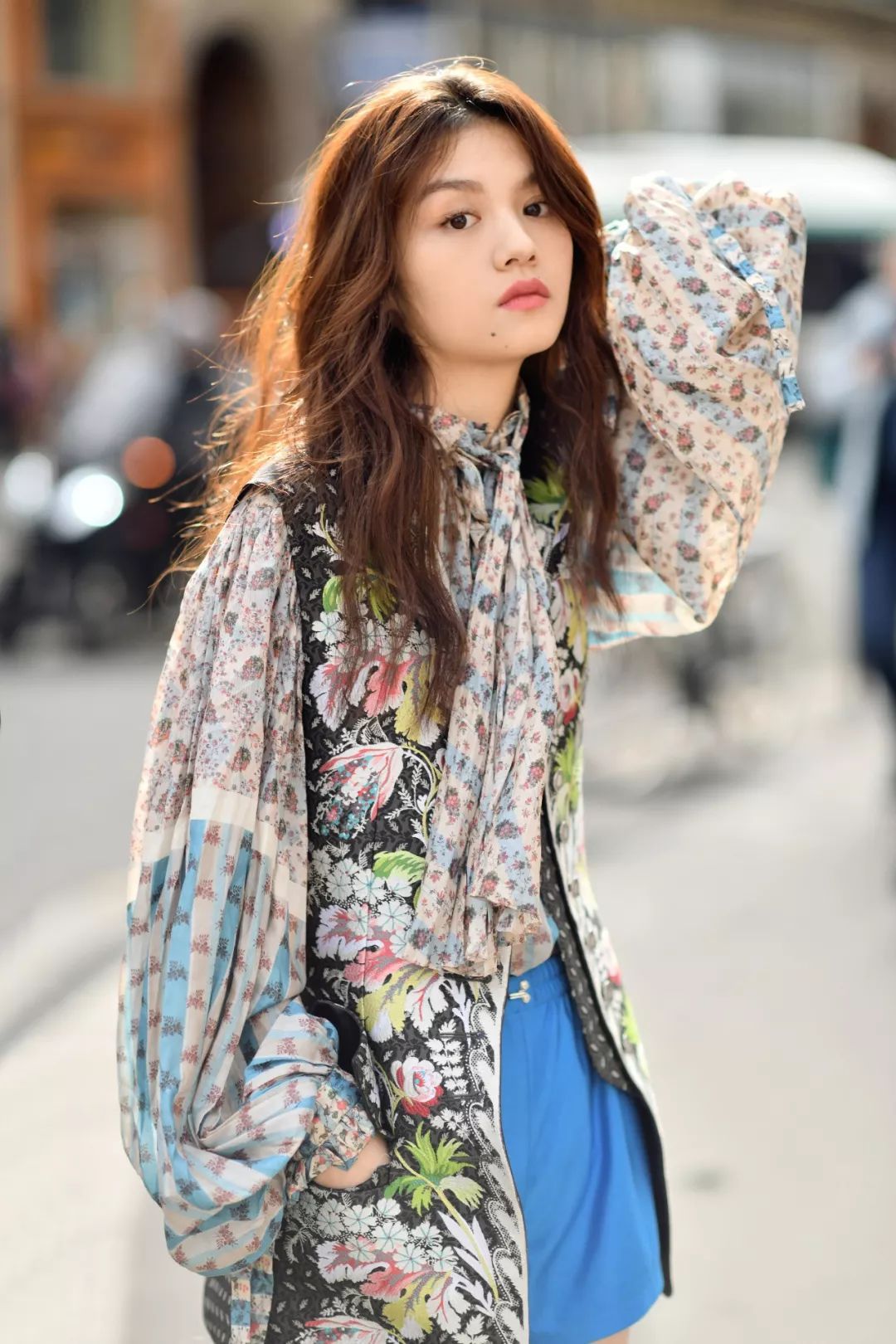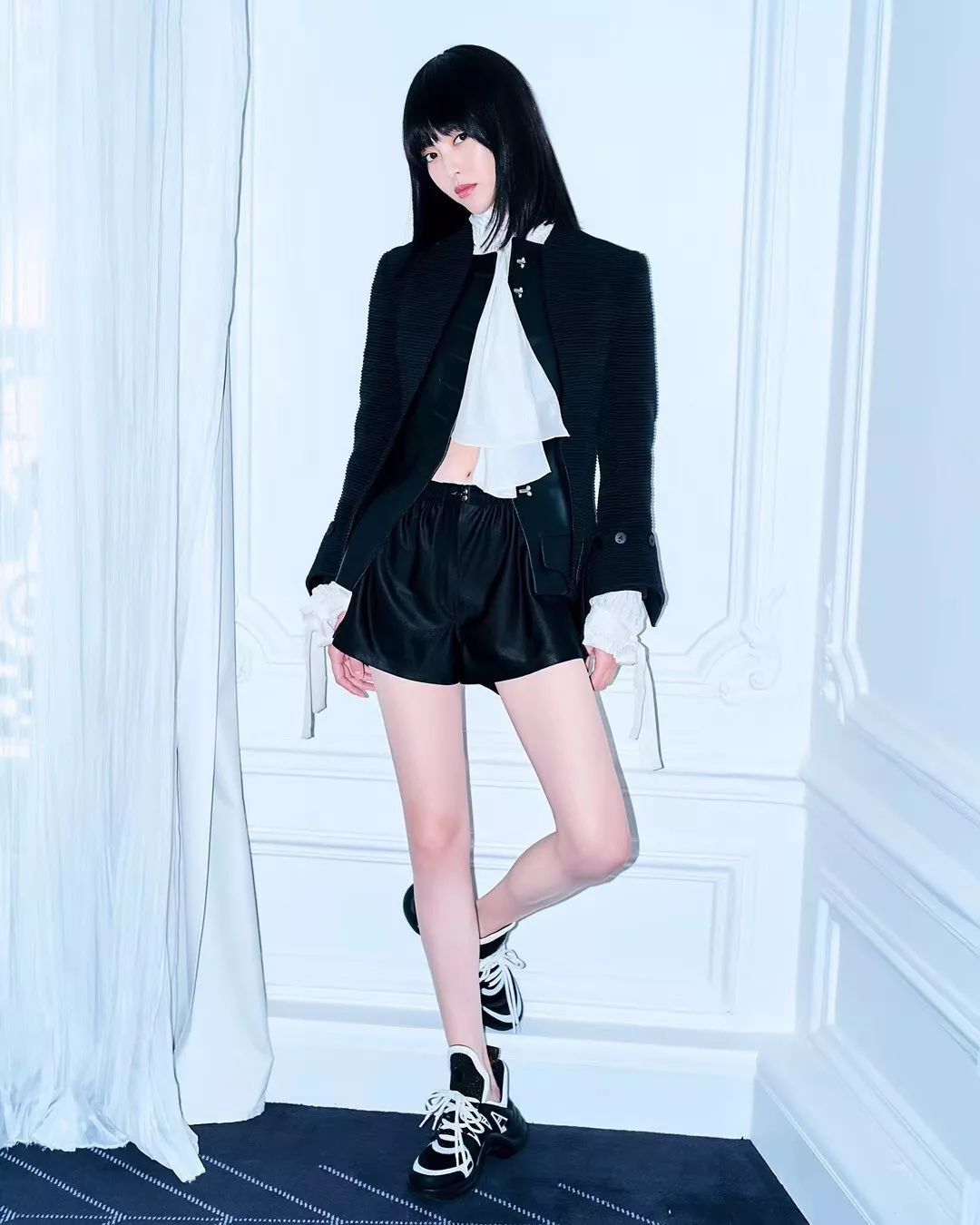 随路易威登在京都见证2018早春系列发布的唐嫣,此番二度受品牌之邀变身巴黎时装周头排客,造型也是Hin花心思: