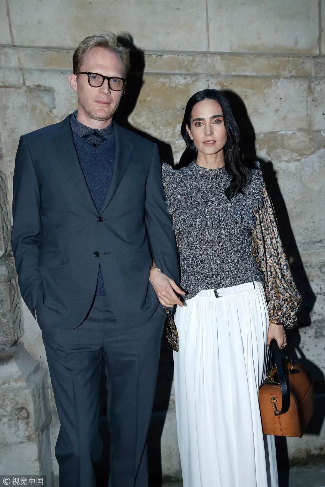 2017春夏巴黎时装周,范冰冰着路易威登2016秋冬黑色裂口效果套装。