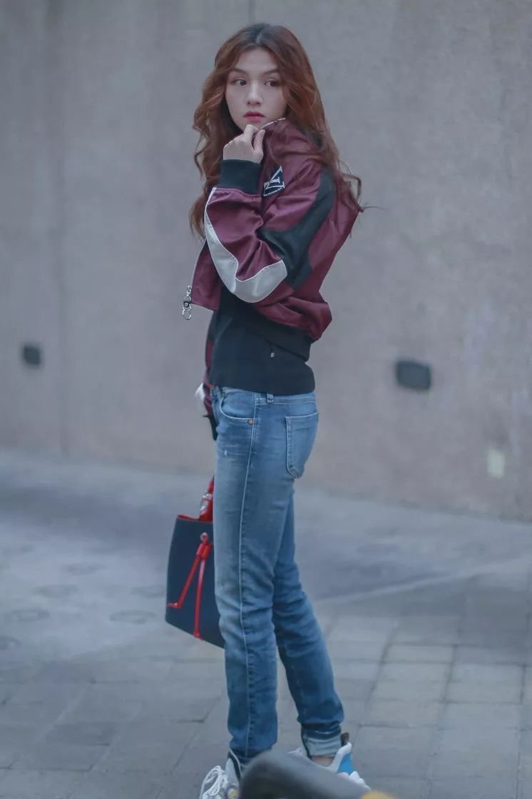 时髦短夹克+简约牛仔裤+路易威登ArchLight运动鞋+Neo Noe手袋,空灵之感让人印象深刻。