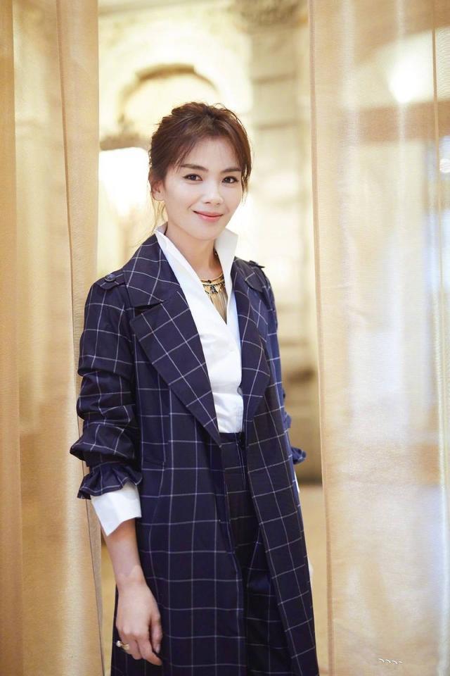 刘涛一身棕灰拼色格纹西装,搭配个性的复古凉鞋,时髦利落之余散发出浓浓的复古气息。(来源:搜狐时尚)