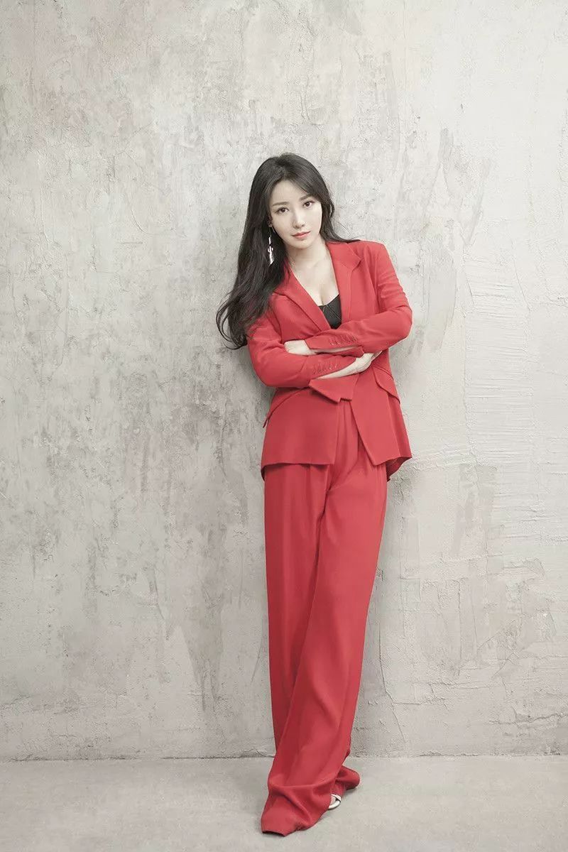 一身红色西服套装,让柳岩看起来更加帅气,同时拖地的裤脚,拉伸自己的大长腿,给人180的既视感,超级迷人。