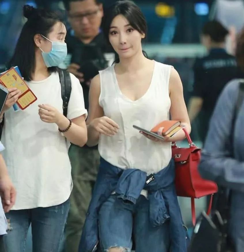白色上衣搭配一条蓝色牛仔裤,变瘦的柳岩更加具有活力,看起来平易近人,格外高级,搭配的红色包包,更是更为自己加分。
