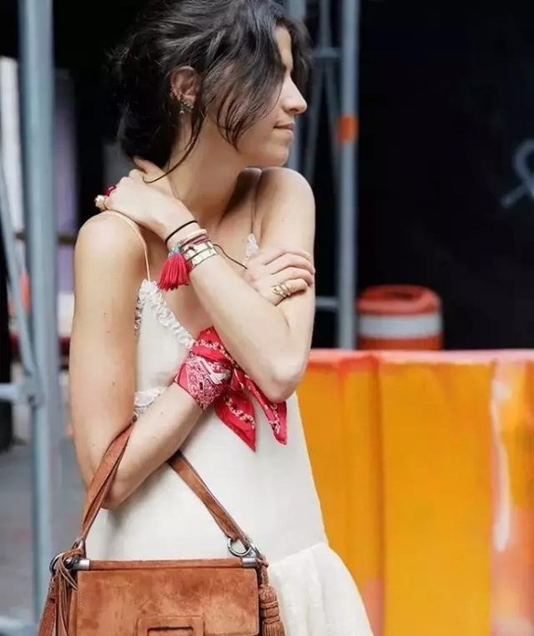 加勒比海盗即视感 小编都不好意思将方巾绑在头发上出门!所以我宁愿低调到路人甲,也不愿意如此高调当炮灰!但有的是方法让你低调奢华有内涵,你可以把方巾当作饰品点缀穿搭。夏季能将方巾绑在手腕上当作手链,秋冬季你可以把方巾绑在包包上,瞬间一包百搭!