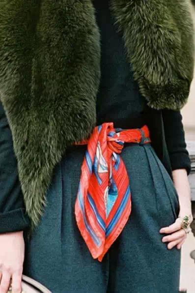 2、像不像欧美老电影里女主角,简单的将心爱的复古丝巾从脑后围绕脖子围起来,是不是很复古呢?