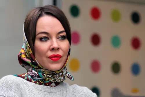 4、选择有花色的将整个头部包裹,也可以利用头发做出不同的造型,另外,选的丝巾花色要和衣服能搭配哦。