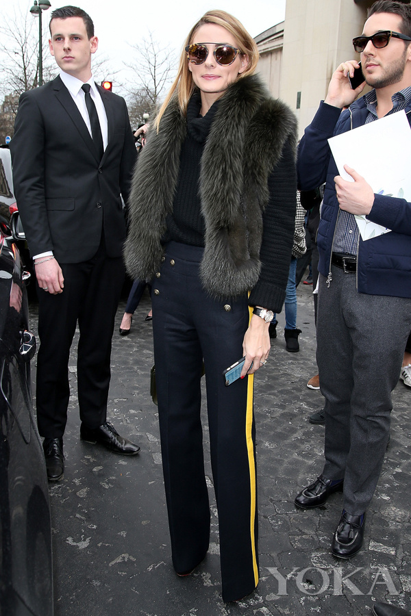 OP爱皮草其实是路人皆知的事了,不过这一次亮相Elie Sabb高定秀场的墨绿色皮草马甲配帅气长裤,还是不禁让人眼前一亮!身边再配上高大威猛的黑衣保镖与小助理,纽约第一名媛的看秀配置就是这么贵(tu)!气(hao)!逼(lai)!人(lu)!