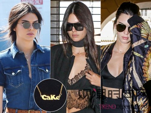 肯德尔.詹纳(kendall jenner)脖子上搭配了一条“cake”字样的项链,不知道新一代女神时不时对于蛋糕有独特的喜好,连项链也要跟蛋糕挂上联系。不过青春的气息总是扑面而来,让人招架不住呢!