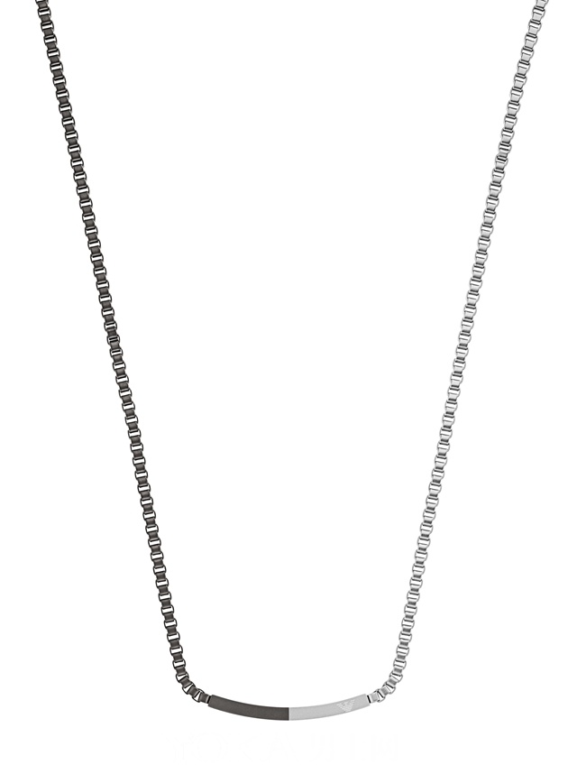 男士系列饰品独具特色,品位非凡。受到工业设计的启发,本季Armani经典logo袖扣,宽面戒指以及ID链条项链这些经典配饰都推出了抛光不锈钢色和工业感枪色的双色款。抛光处理使得饰品更为精美,同时不失男性胆识魄力。
