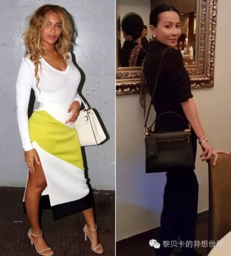 这款包大气的设计很受御姐欢迎,碧昂斯手提白色很御姐,刘嘉玲单肩背黑色款倒是有些小女人。▼