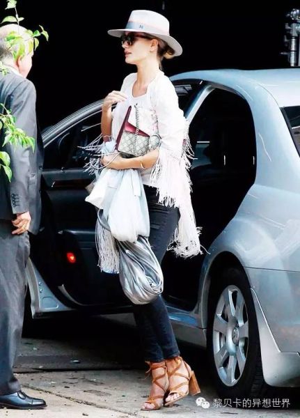 我个人喜欢装饰红色麂皮,有蜜蜂刺绣和印花图案的款,更年轻更有个性。上面的全智贤,下面的Rosie都是背这个款。▼