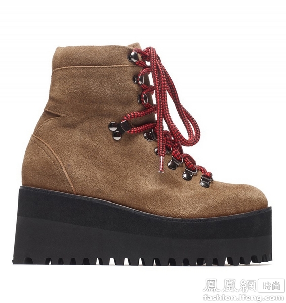 Jeffrey Campbell 棕色毛绒厚底靴,约1336元。